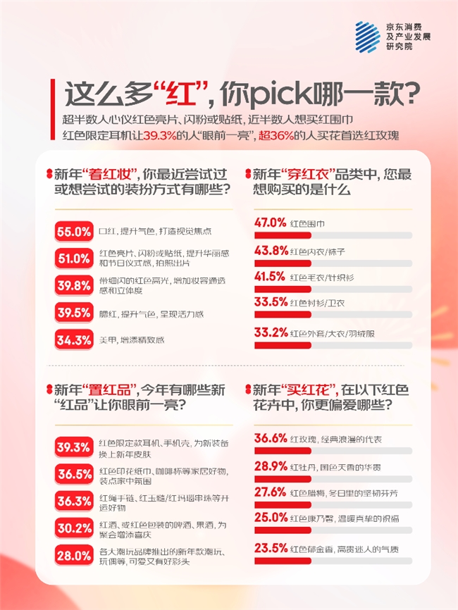 026年到了2,”?45.1%的人以红修饰什么样的红品最有“新/心意,色帽子和血色包包选了血色领巾、红;置了血色毛衣或表衣42%的人给本身添,亮眼“战袍”行动跨年的;身的心情搭子入手39%的人从不离,机壳、挂件和钥匙扣随身带上了血色手;表此,信头像、手机壁纸给本身换了血色微,血色保温杯、记事本正在办公室里添置了,幼衣服的伙伴们也不正在少数给宠物计算血色牵引绳和。