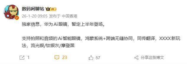 本事的兴盛发扬跟着 AI ,场迎来新高潮智能眼镜市,组织这一赛道稠密厂商纷纷。日近,HUAWEI AI 智能眼镜的相干讯息数码博主 @數碼閒聊站 独家曝光了 ,2026 年上半年正式揭橥这款备受期望的新品暂定于 ,位升级的操纵体验将为用户带来全方。