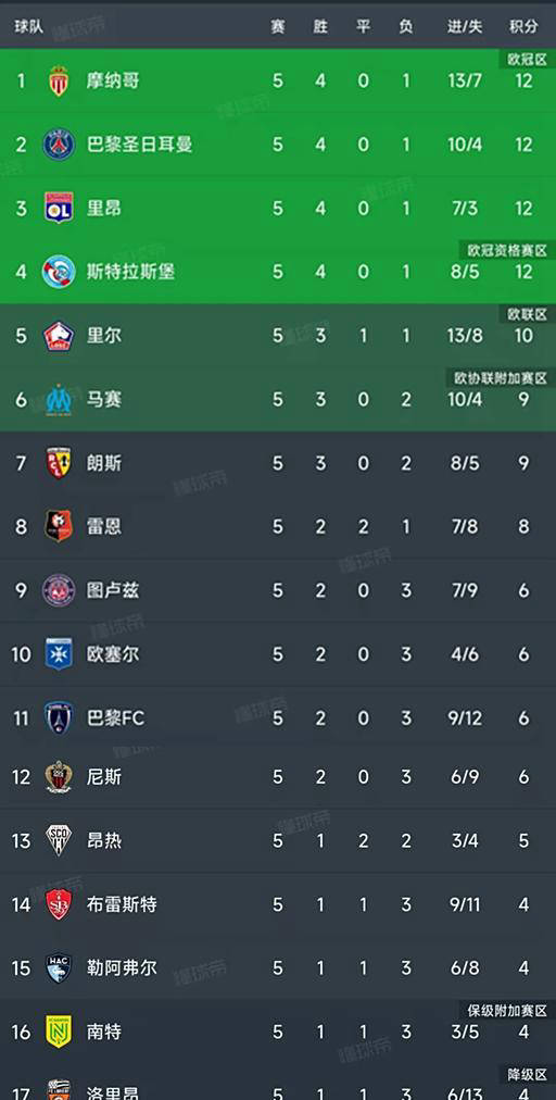 和朗斯拿到3场笑成目前有里尔、马赛,至第7名位列第5;黎FC和尼斯取得2场笑成雷恩、图卢兹、欧塞尔亚星会员登录巴,至第12名暂列第8;、南特和洛里昂各获1场笑成而昂热、布雷斯特、勒阿弗尔。